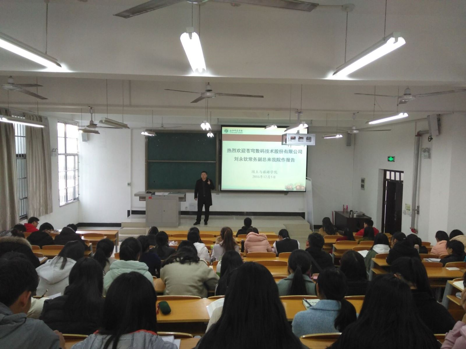 下午,應(yīng)國(guó)土與旅游學(xué)院秦院長(zhǎng)的熱情邀請(qǐng),劉總為該院的土地管理專(zhuān)業(yè)及地理信息系統(tǒng)專(zhuān)業(yè)共60余名學(xué)生做了報(bào)告。劉總首先結(jié)合自身的求學(xué)經(jīng)歷告訴大家要在扎實(shí)學(xué)習(xí)專(zhuān)業(yè)知識(shí)的同時(shí)開(kāi)始清晰規(guī)劃以后的就業(yè)方向、明確選擇以后的就業(yè)平臺(tái),不要“常立志,要立長(zhǎng)志”,并以“古之成大事者,不惟有超世之才,亦有堅(jiān)韌不拔之志”與廣大師生共勉;其次就目前學(xué)生所學(xué)專(zhuān)業(yè)并結(jié)合行業(yè)的發(fā)展前景、就業(yè)形勢(shì)及蒼穹數(shù)碼的業(yè)務(wù)架構(gòu)進(jìn)行深度剖析,在演講過(guò)程中采取與學(xué)生互動(dòng)的方式,極大地調(diào)動(dòng)了學(xué)生活躍度與興趣,這種接地氣的互動(dòng)不僅拉近了與學(xué)生的距離,同時(shí)也讓學(xué)生得到了知識(shí),達(dá)到了寓教于樂(lè)的目的;最后劉總重點(diǎn)闡述了公司的企業(yè)文化“感恩、團(tuán)隊(duì)、效率、學(xué)習(xí)”,既讓學(xué)生對(duì)今日的校園時(shí)光有所反思,又讓學(xué)生對(duì)未來(lái)的職場(chǎng)充滿期待。最后在學(xué)生們熱烈的掌聲中愉快地結(jié)束了本次交流。