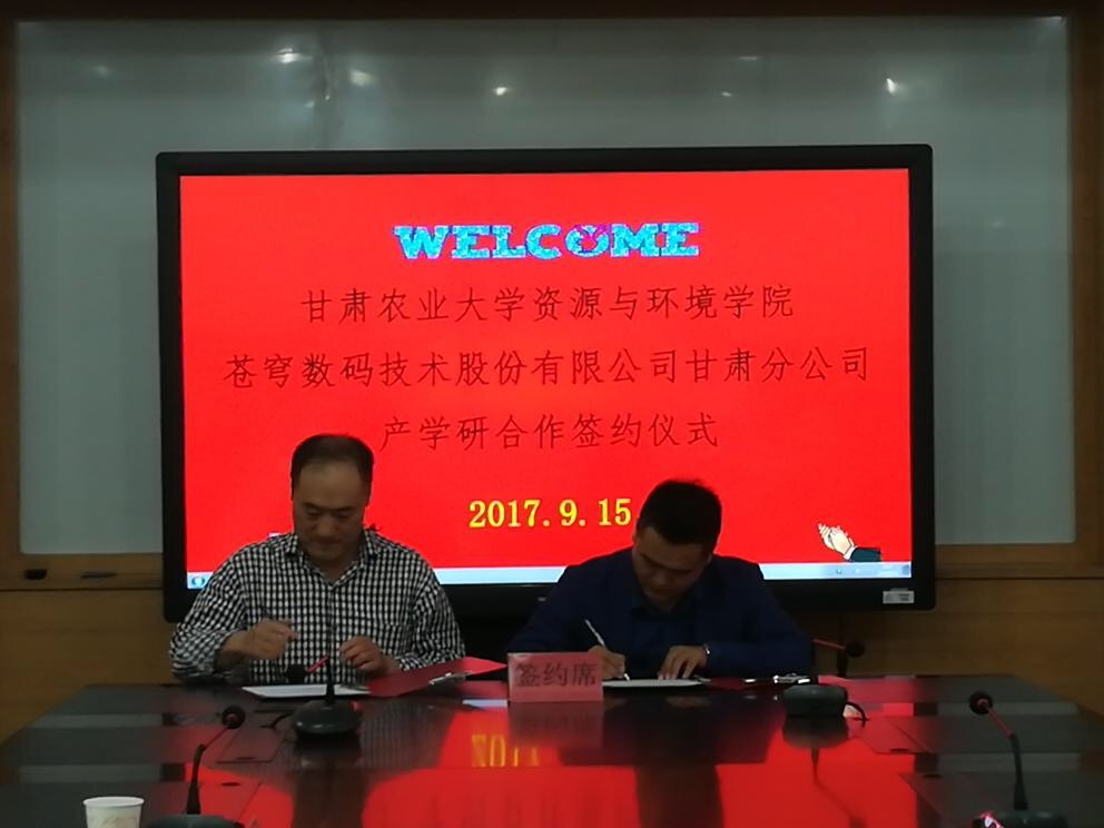 出席本次簽約儀式的有:甘肅農(nóng)業(yè)大學(xué)資源與環(huán)境學(xué)院院長(zhǎng)劉學(xué)錄、書記蔡立群及學(xué)院老師和部分學(xué)生干部代表,蒼穹數(shù)碼技術(shù)股份有限公司甘肅分公司總經(jīng)理周建軍、技術(shù)總監(jiān)鄭嬌玉、項(xiàng)目管理部經(jīng)理王嬋、技術(shù)服務(wù)部經(jīng)理王繼娥。