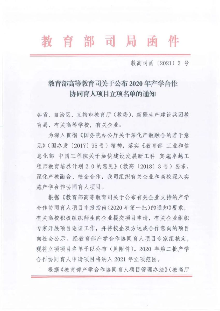 教育部2020年產(chǎn)學(xué)合作協(xié)同育人項目立項名單(企業(yè)順序)