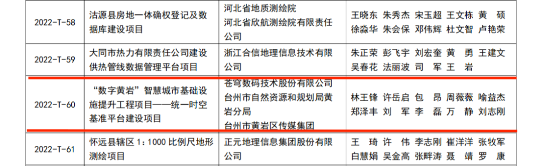 5.與臺州市自然資源和規(guī)劃局黃巖分局、臺州市黃巖區(qū)傳媒集團(tuán)共同完成的《“數(shù)字黃巖”智慧城市基礎(chǔ)設(shè)施提升工程項(xiàng)目——統(tǒng)一時(shí)空基準(zhǔn)平臺建設(shè)項(xiàng)目》榮獲銅獎——