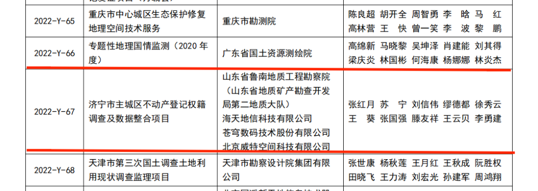 2.與山東省魯南地質(zhì)工程勘察院(山東省地質(zhì)礦產(chǎn)勘查開發(fā)局第二地質(zhì)大隊(duì))、海天地信科技有限公司、北京威特空間科技有限公司共同完成的《濟(jì)寧市主城區(qū)不動產(chǎn)登記權(quán)籍調(diào)查及數(shù)據(jù)整合項(xiàng)目》榮獲銀獎——