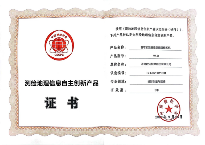 同時(shí),“蒼穹實(shí)景三維數(shù)據(jù)管理系統(tǒng)” 憑借創(chuàng)新性的技術(shù)架構(gòu)、強(qiáng)大的功能和廣泛的應(yīng)用前景,獲得了“測(cè)繪地理信息自主創(chuàng)新產(chǎn)品”。這一榮譽(yù)彰顯了蒼穹數(shù)碼在技術(shù)研發(fā)方面的不懈努力和勇于創(chuàng)新的精神。該系統(tǒng)為測(cè)繪地理信息行業(yè)帶來了新的發(fā)展動(dòng)力,為實(shí)現(xiàn)實(shí)景三維數(shù)據(jù)的高效管理和深度應(yīng)用提供了有力支撐。