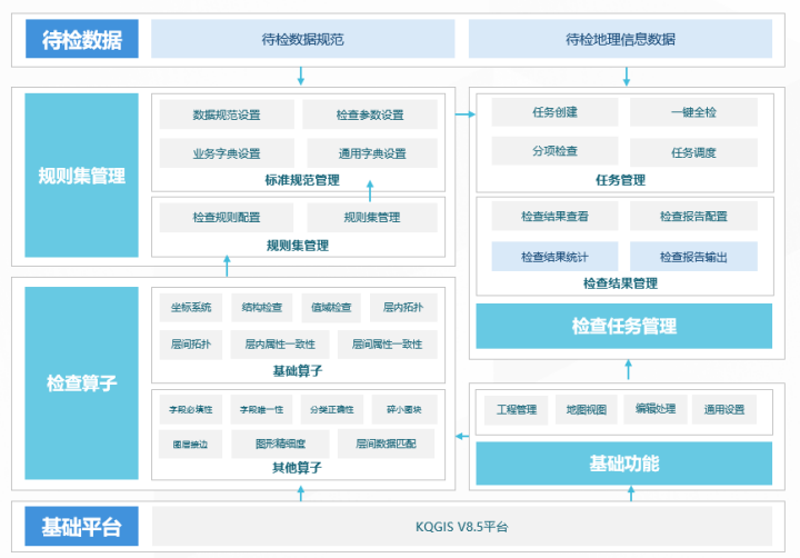 蒼穹地理信息數(shù)據(jù)質(zhì)量檢查系統(tǒng)基于KQGIS平臺自主研發(fā),旨在對各類二三維地理信息數(shù)據(jù)進(jìn)行高效準(zhǔn)確的質(zhì)檢?;诓粩喔M(jìn)二調(diào)、三調(diào)和持續(xù)十多年的變更調(diào)查服務(wù),以及持續(xù)支撐國土空間規(guī)劃、實景三維等強GIS應(yīng)用,積累形成豐富的空間、屬性檢查算子,面向各類地理信息數(shù)據(jù)規(guī)范化質(zhì)量檢查要求,實現(xiàn)基于算子的檢查規(guī)則靈活配置與規(guī)則集構(gòu)建管理,對二三維地理信息數(shù)據(jù)進(jìn)行高效檢查和結(jié)果輸出。