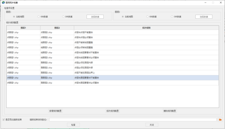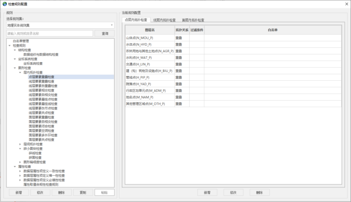 針對具體的數(shù)據(jù)檢查項目,基于系統(tǒng)提供的檢查算子,結(jié)合不同的數(shù)據(jù)規(guī)范要求,形成檢查規(guī)則集:一方面可按照數(shù)據(jù)規(guī)范明確的內(nèi)容進(jìn)行配置,另一方面可結(jié)合地方特色進(jìn)行本地化的規(guī)則細(xì)項配置,自由組裝形成對應(yīng)的檢查規(guī)則,滿足不同業(yè)務(wù)場景及本地化需求的地理信息數(shù)據(jù)質(zhì)量核查要求。