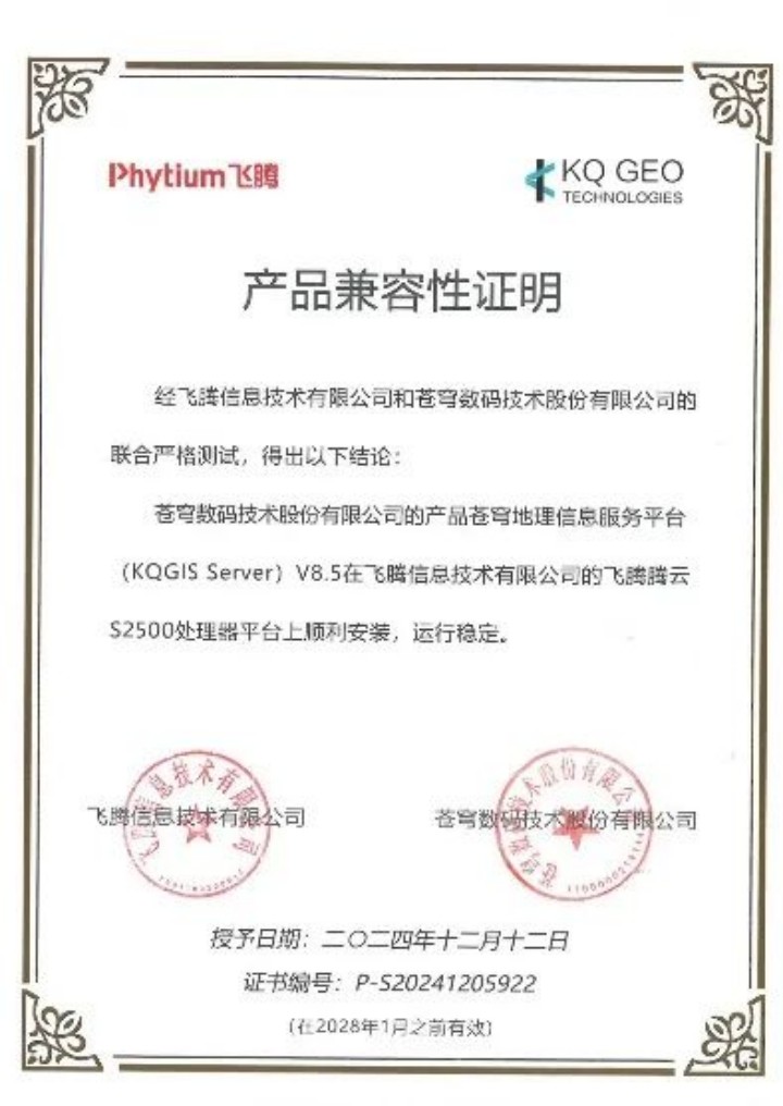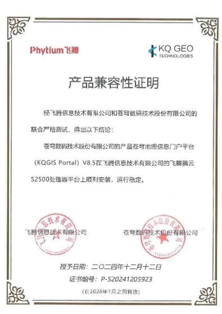 蒼穹數(shù)碼和飛騰的產(chǎn)品適配認(rèn)證,是雙方共同開展的一項(xiàng)覆蓋產(chǎn)品功能完整性、性能穩(wěn)定性以及安全性等多個(gè)關(guān)鍵維度的測試活動(dòng)。經(jīng)過嚴(yán)謹(jǐn)和細(xì)致的測試,證明KQGIS在飛騰環(huán)境上運(yùn)行流暢,性能卓越,能夠完全滿足用戶對于關(guān)鍵性應(yīng)用的高標(biāo)準(zhǔn)需求。本次適配認(rèn)證也意味著蒼穹數(shù)碼在國產(chǎn)環(huán)境廣泛兼容性上又得到了進(jìn)一步提升,能夠?yàn)橛脩籼峁└觾?yōu)秀的GIS產(chǎn)品。