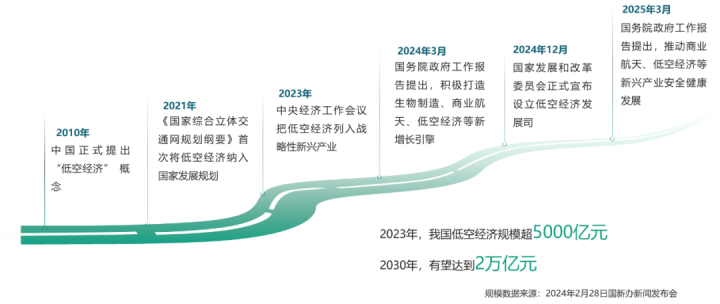 2025 年,中央一號(hào)文件首提 “低空經(jīng)濟(jì)”,明確提出 “支持發(fā)展智慧農(nóng)業(yè),拓展人工智能、數(shù)據(jù)、低空等技術(shù)應(yīng)用場(chǎng)景”。隨后在3月5日召開(kāi)的第十四屆全國(guó)人民代表大會(huì)第三次會(huì)議上,國(guó)務(wù)院總理李強(qiáng)在政府工作報(bào)告中進(jìn)一步擘畫產(chǎn)業(yè)發(fā)展藍(lán)圖,提出要開(kāi)展新技術(shù)新產(chǎn)品新場(chǎng)景大規(guī)模應(yīng)用示范行動(dòng),推動(dòng)商業(yè)航天、低空經(jīng)濟(jì)等新興產(chǎn)業(yè)安全健康發(fā)展。
