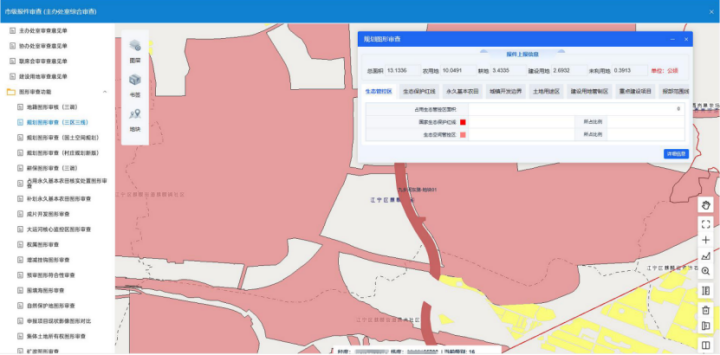 針對(duì)項(xiàng)目申報(bào)多補(bǔ)正、有退件的問題,沿用江蘇省建設(shè)用地審批系統(tǒng)中的帶圖審批能力,省市縣三級(jí)部門依托統(tǒng)一的底圖開展業(yè)務(wù)審批工作,并將一鍵圖審功能、業(yè)務(wù)審查功能前置至縣、區(qū)組卷階段,實(shí)現(xiàn)在報(bào)件組卷環(huán)節(jié)即可分析審查報(bào)批地塊是否存在規(guī)劃沖突、占用生態(tài)管控空間、占用永久基本農(nóng)田等問題,通過技術(shù)性輔助審查前置減少后續(xù)補(bǔ)正、退件的耗時(shí)。并同步建立圖形審查結(jié)果緩存機(jī)制,系統(tǒng)自動(dòng)存儲(chǔ)管理前序?qū)徍谁h(huán)節(jié)的圖形審查結(jié)果,當(dāng)流轉(zhuǎn)到后續(xù)廳局領(lǐng)導(dǎo)審核節(jié)點(diǎn)時(shí)可直接調(diào)取前序圖審結(jié)果,無需重復(fù)分析,從而提升審批效率。