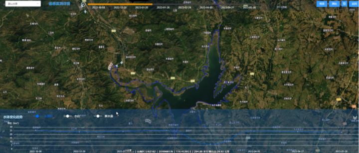 通過對蓄滯洪區(qū)等水利工程進行動態(tài)連續(xù)監(jiān)測,當(dāng)洪澇災(zāi)害發(fā)生時,平臺支持連續(xù)多日動態(tài)監(jiān)測蓄滯洪區(qū)的水體面積、水深變化,動態(tài)展示災(zāi)害發(fā)展過程及影響范圍,提升災(zāi)害監(jiān)測、應(yīng)急調(diào)度、災(zāi)后損失評估能力。