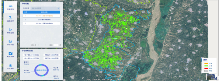 平臺融合遙感AI與灌區(qū)專業(yè)模型能力,實現(xiàn)灌區(qū)種植結(jié)構(gòu)的智能化自動提取、需耗水預(yù)測預(yù)報、作物長勢分析、灌溉進度分析等,助力灌區(qū)管理者更精準(zhǔn)地掌握作物生長狀況和水資源需求,優(yōu)化灌溉計劃,提高水資源利用效率。