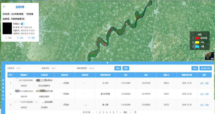 基于“四亂”智能提取模型,平臺能夠動態(tài)監(jiān)測河湖水域岸線圈占、圍墾、采砂場、岸灘邊?。ǘ眩┩翀觥⒗逊?、建筑物等疑似問題,及時發(fā)現(xiàn)亂占、亂建、亂堆、亂采等違規(guī)行為,顯著提升河湖監(jiān)管與執(zhí)法處置能力,守護河湖水域的健康與可持續(xù)發(fā)展。