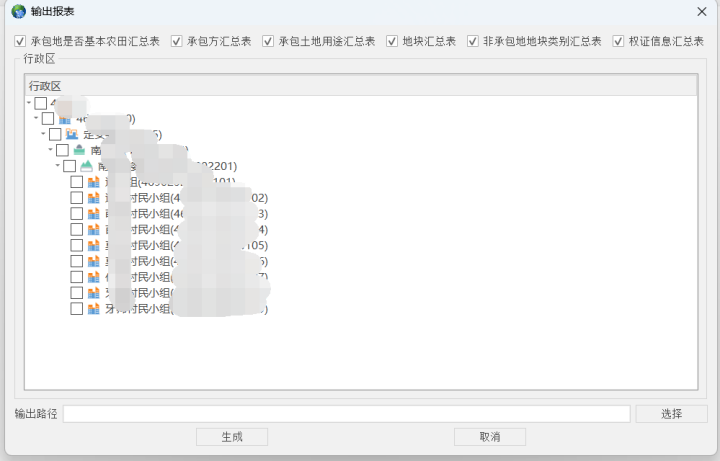 軟件支持多類型報表輸出,包含承包地是否基本農(nóng)田匯總表、承包方匯總表、承包土地用途匯總表、地塊匯總表、承包地地塊類別匯總表、證信息匯總表;同時支持多種圖件批量輸出,如批量生成宗地圖、分幅地籍圖、確權登記宗地圖、農(nóng)戶承包地塊平面圖、確權登記公示圖、承包地塊分布圖、承包地塊示意圖等,為決策支持提供快速有力的支撐。