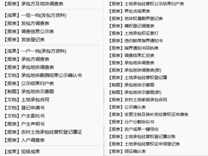 軟件可以按照國家、省市級數(shù)據(jù)標準要求,導出承包方調(diào)查表、發(fā)包方調(diào)查表、公示結果歸戶表、土地承包經(jīng)營權證套打、調(diào)查信息公示表、土地承包合同、農(nóng)村土地承包經(jīng)營權證登記簿、承包地塊調(diào)查表等國標報表。