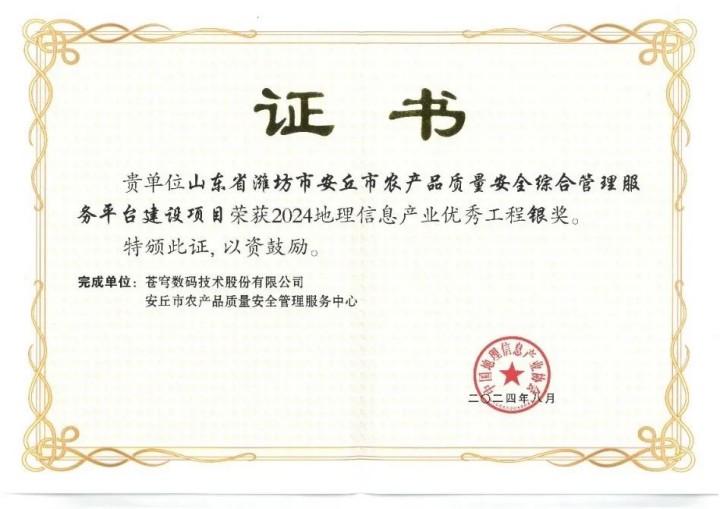 其中,“‘電子安全碼’加持的全鏈條農(nóng)產(chǎn)品質(zhì)量安全監(jiān)管平臺(tái)”更是以創(chuàng)新實(shí)力征服跨界評(píng)審,榮膺2024地理信息產(chǎn)業(yè)協(xié)會(huì)優(yōu)秀工程銀獎(jiǎng),成為唯一登榜的農(nóng)業(yè)數(shù)字化解決方案!