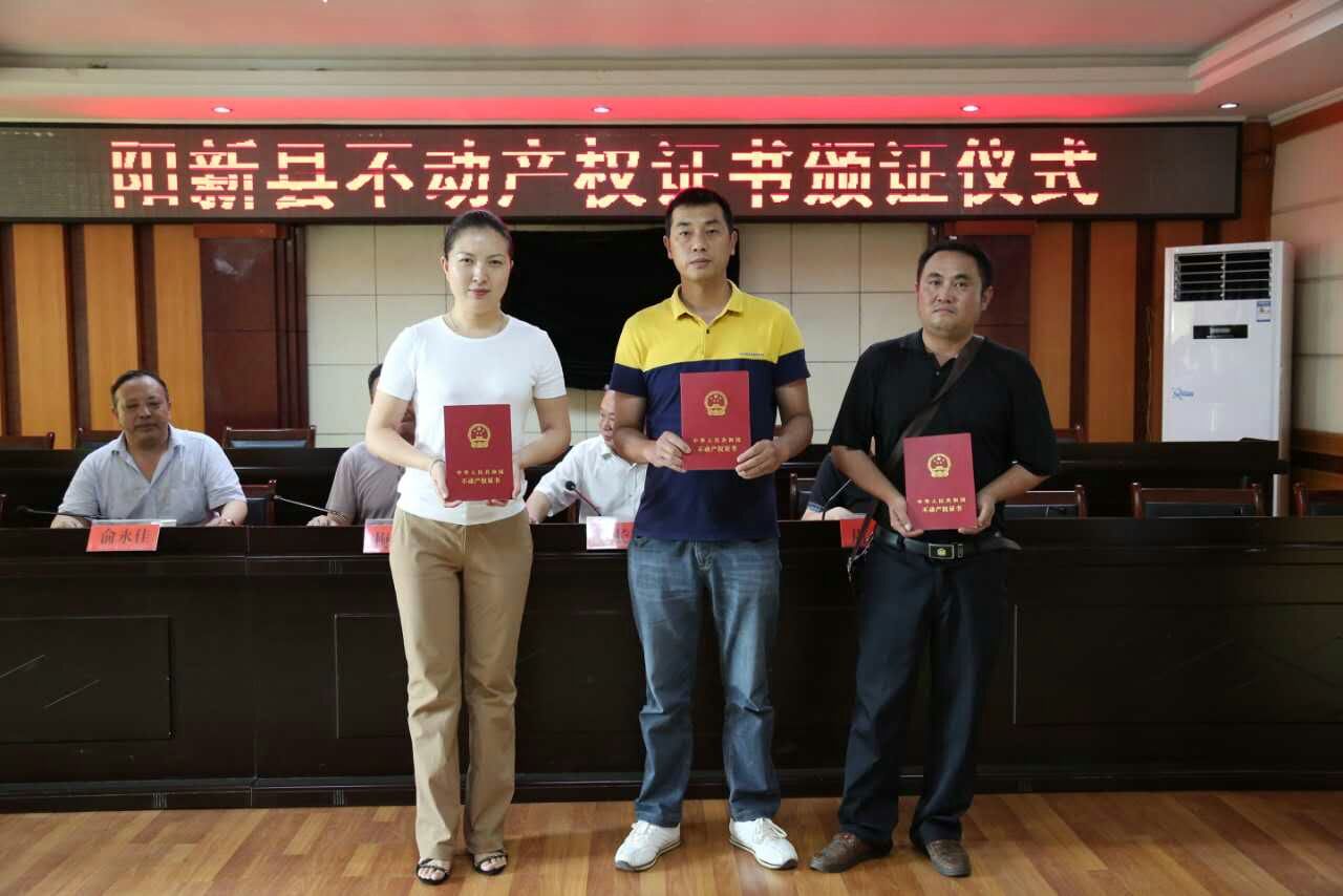 2016年6月30日上午,黃石市陽新縣不動產權證書頒證儀式在陽新縣行政服務大廳隆重舉行。省、市相關部門領導、技術支撐單位蒼穹數碼代表等共同出席頒證儀式。群眾代表拿到了編號為“鄂(2016)陽新縣不動產第0000001”的不動產權證書。標志著黃石市陽新縣結束了土地、房產、林地、草地等不動產分散登記的歷史,宣告該市不動產統(tǒng)一登記制度正式實施,開啟了不動產統(tǒng)一登記的新征程。